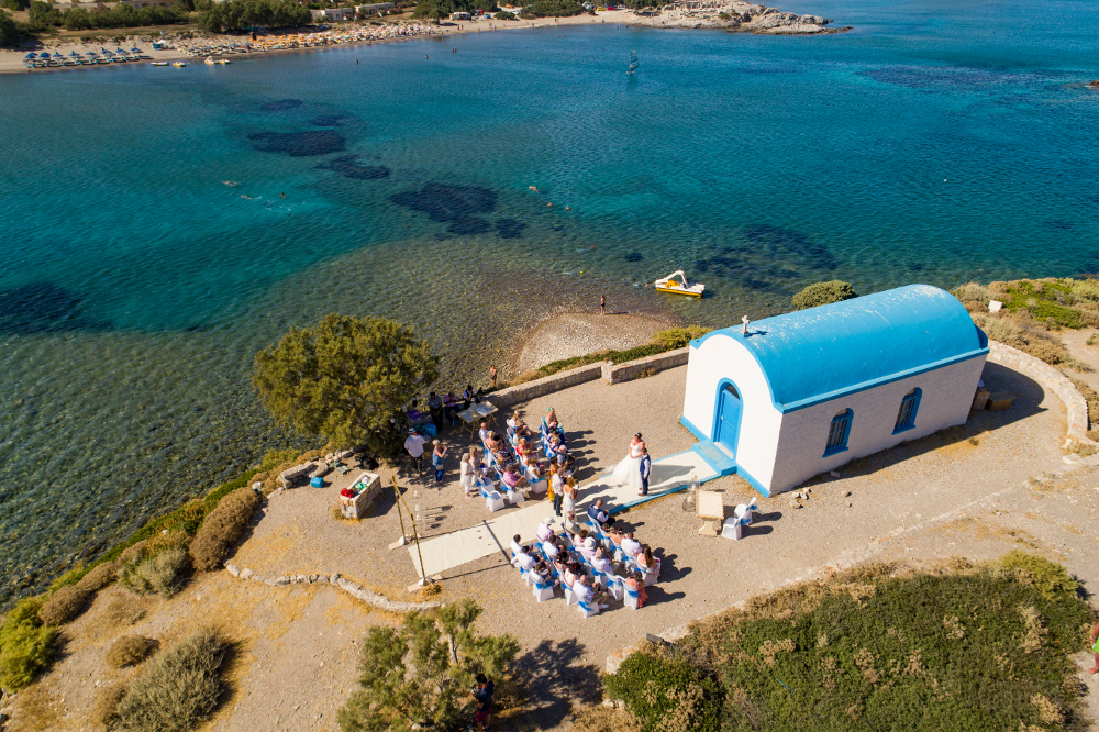 The islet of Kastri off the coast of Kos is one of the most picturesque wedding locations you could wish for. The base of the Kastri Wedding Package is as per our Amethyst package: