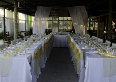 We have white chair covers with organza sashes in the colour of your choice for your wedding and/or reception chairs. We always include table runners of the same colour, wedding sprinkles and name cards when chair covers are taken for the reception and this is at no extra cost.
