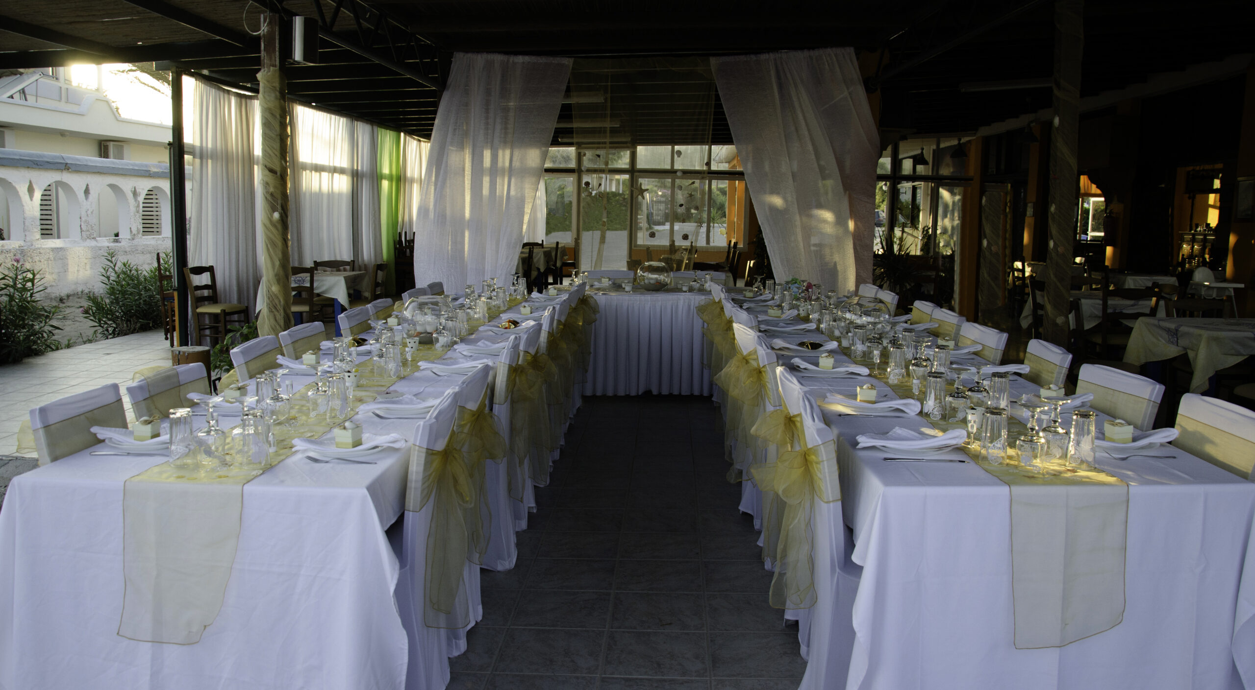 We can add an arch to Kastri Islet as the space is much smaller and only needs a delicate decoration. We also have the ability to put carpet should you want an aisle to walk down.